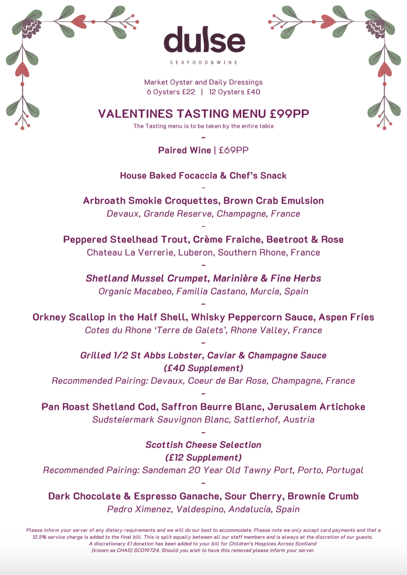 Dive into our Valentine's Tasting Menu, a celebration of the finest Scottish seafood.